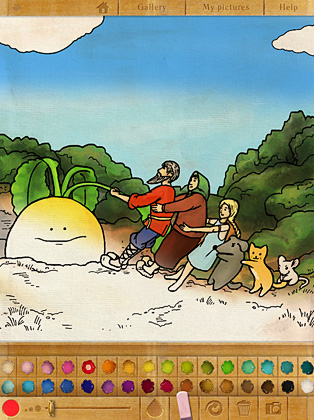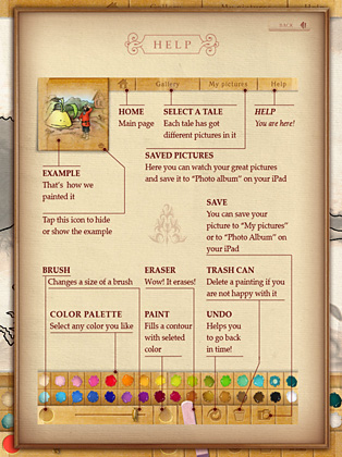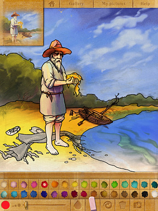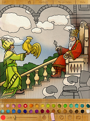 Travel across the old good Russian fairy tales! Our unique digital interactive coloring book is adapted for young children. This splendid application is originally designed. It contains a choice of drawing tools, clear and easy-to-use interface and allows saving images to a photo album and sharing your creativity with friends.
